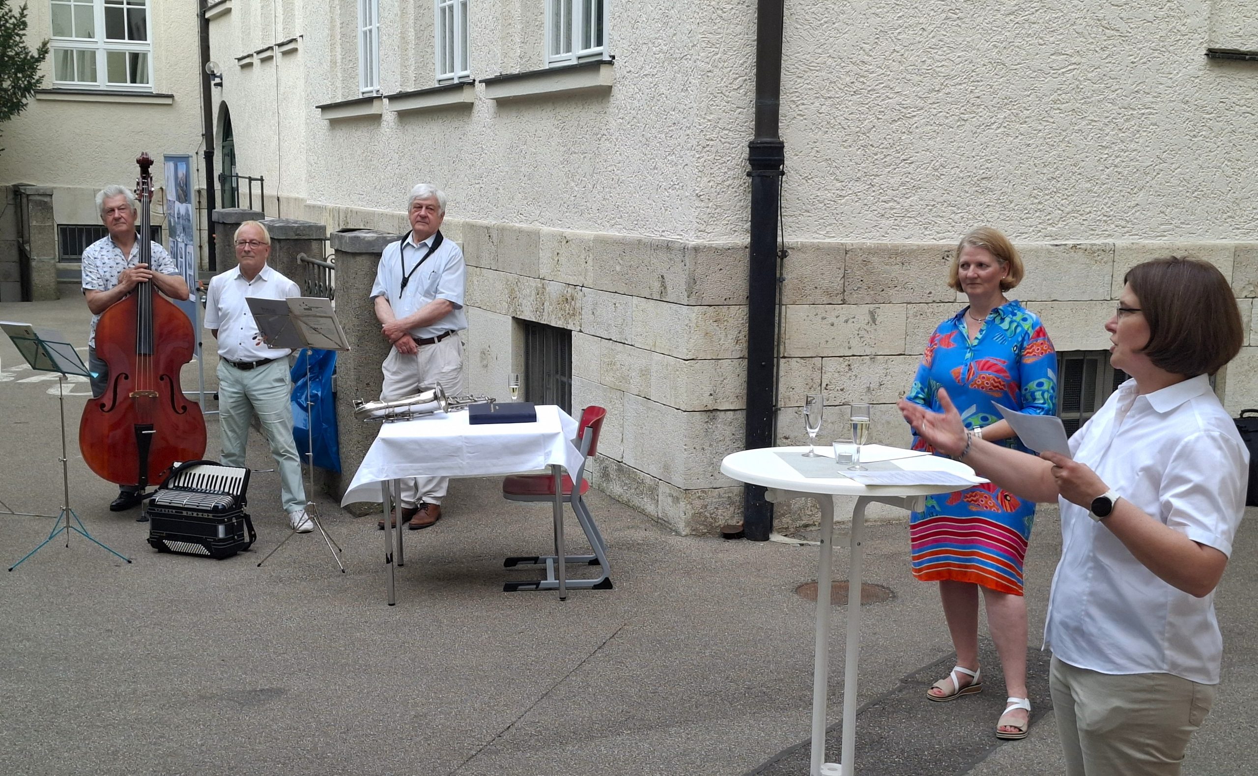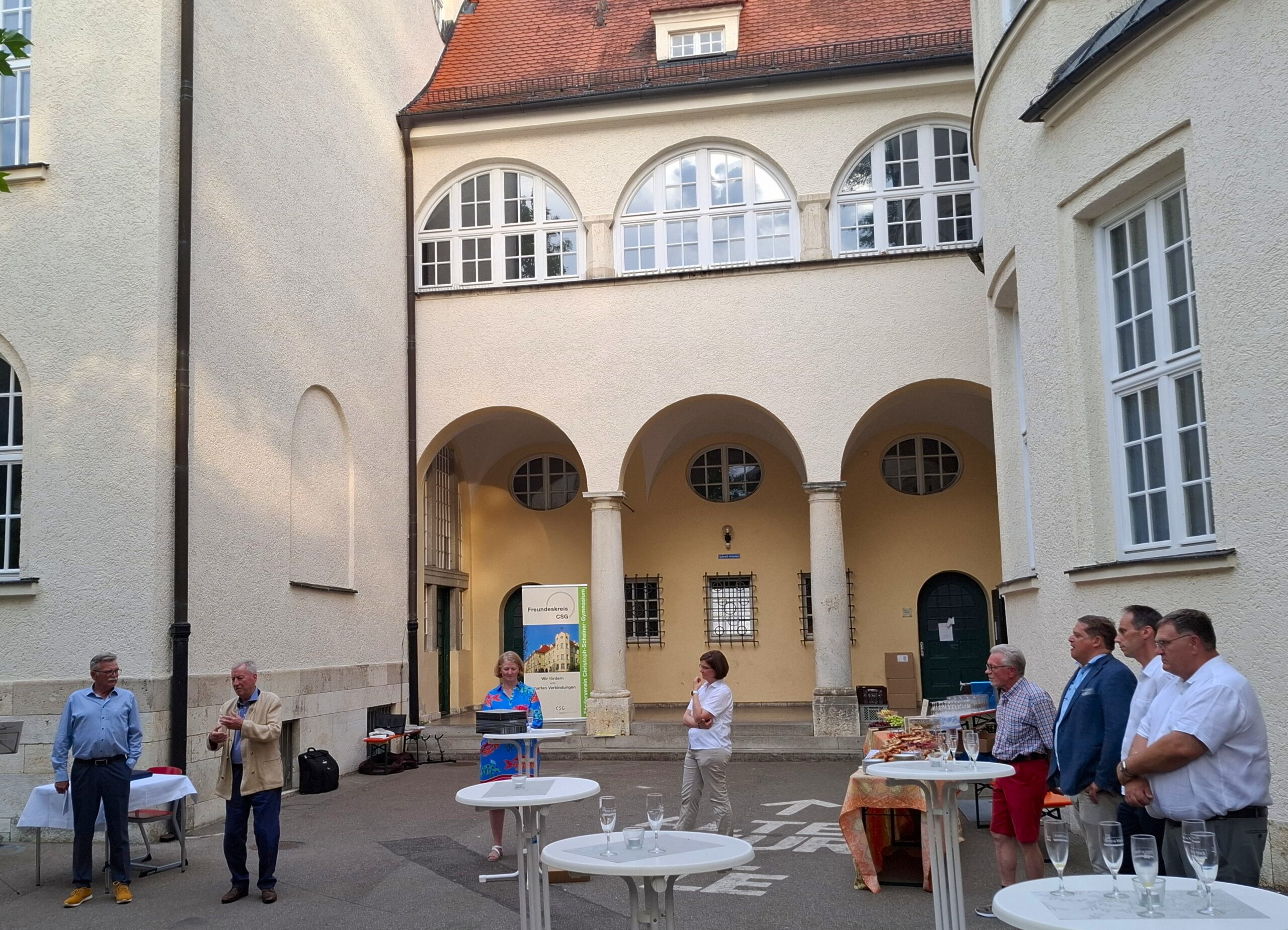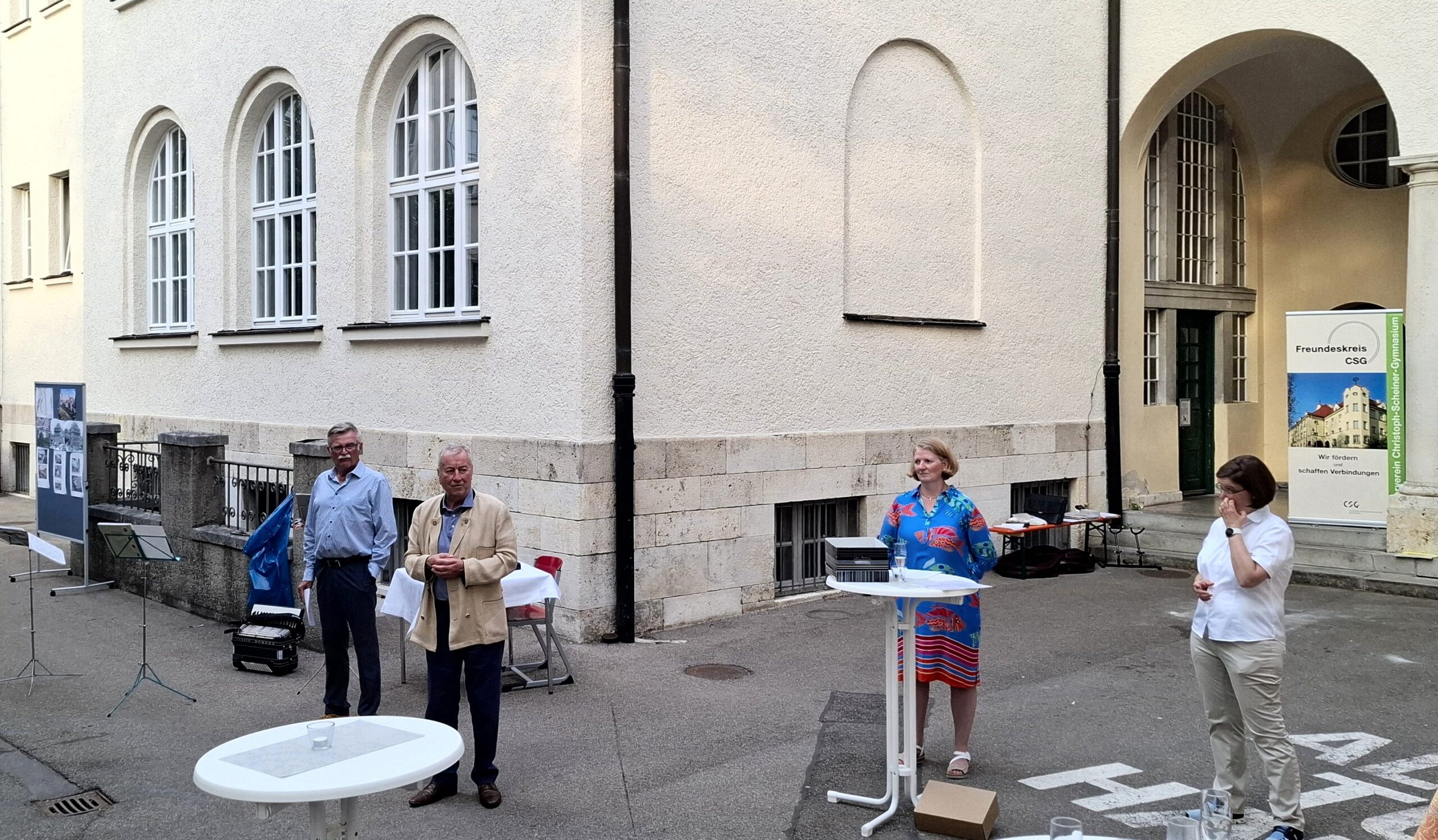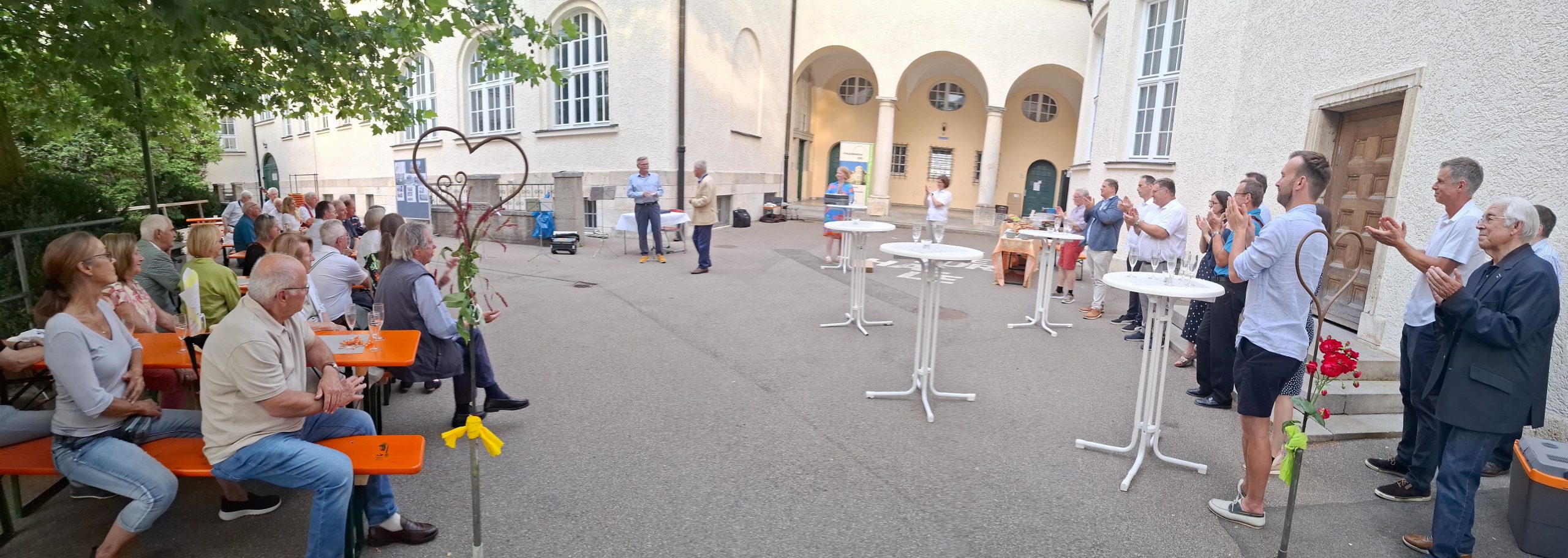 Genau 40 Jahre nach seinem Gründungstag, dem 19. Juli 1985, feiert der Freundeskreis sein 40-jähriges Jubiläum mit zahlreichen Gästen unter den Scheiner Arkaden im Schulhof.